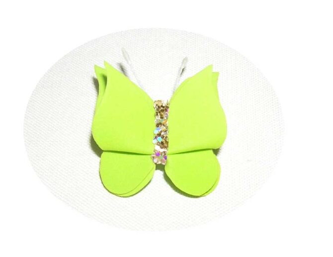 Pentljica iz pene z bleščicami, zelena, s sponko.