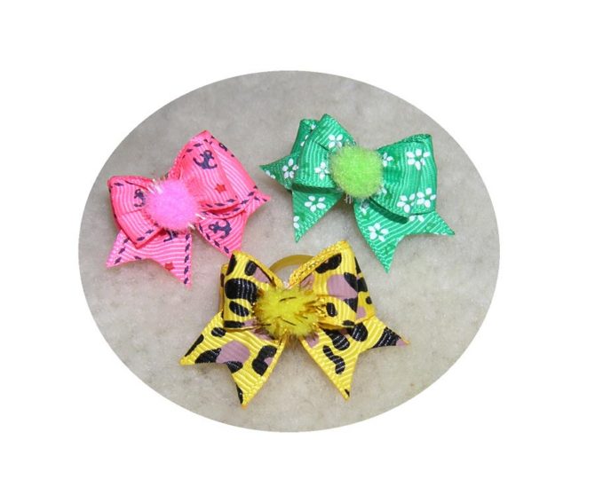 Ljubke pisane pentljice, s svetlečimi cofki, 3 kosi. Ko pentljice uporabite, imejte vašega ljubljenčka vedno pod kontrolo.
