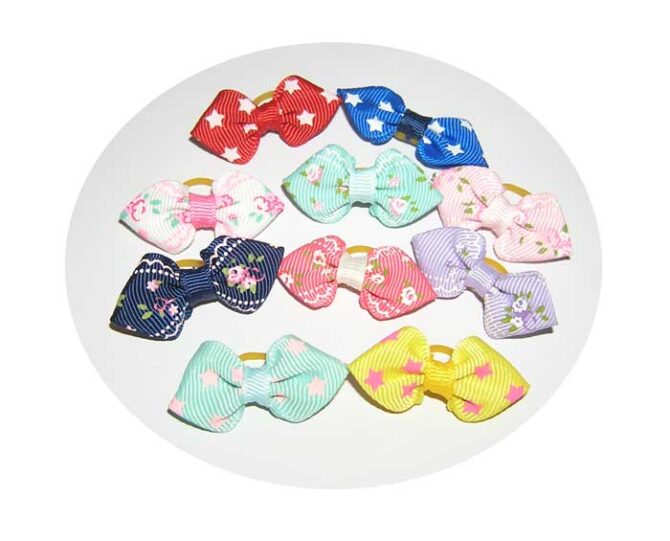 Pentljice iz satenastih ali rebrastih trakov, z elastiko, ki ne poškoduje dlake vašega ljubljenčka ali s sponko, s kristali ali perlami v centru. Izbrane so naključno, zato je lahko kakšna pentljica drugačna.
