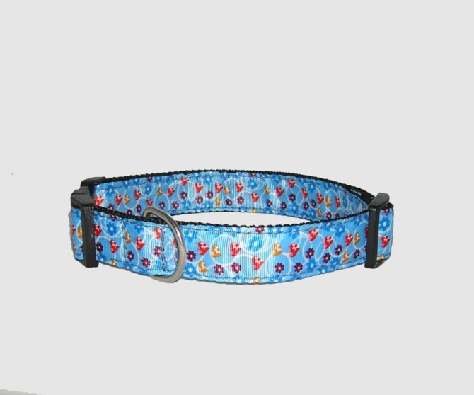 Bodite prvi in dodajte vaše mnenje “Ovratnica za psa, modra, srčki, rožice, 25 mm” Prekliči odgovor