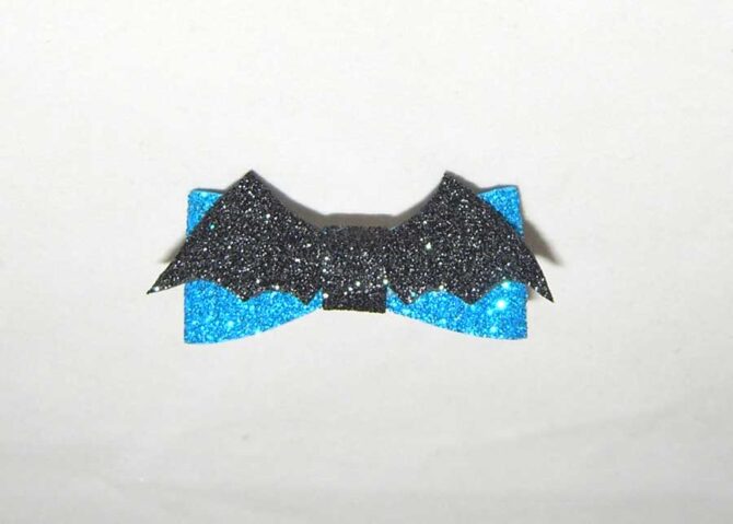 Pentljica netopirček, izdelana iz pene z bleščicami, z aligator sponko, primerna za noč čarovnic.