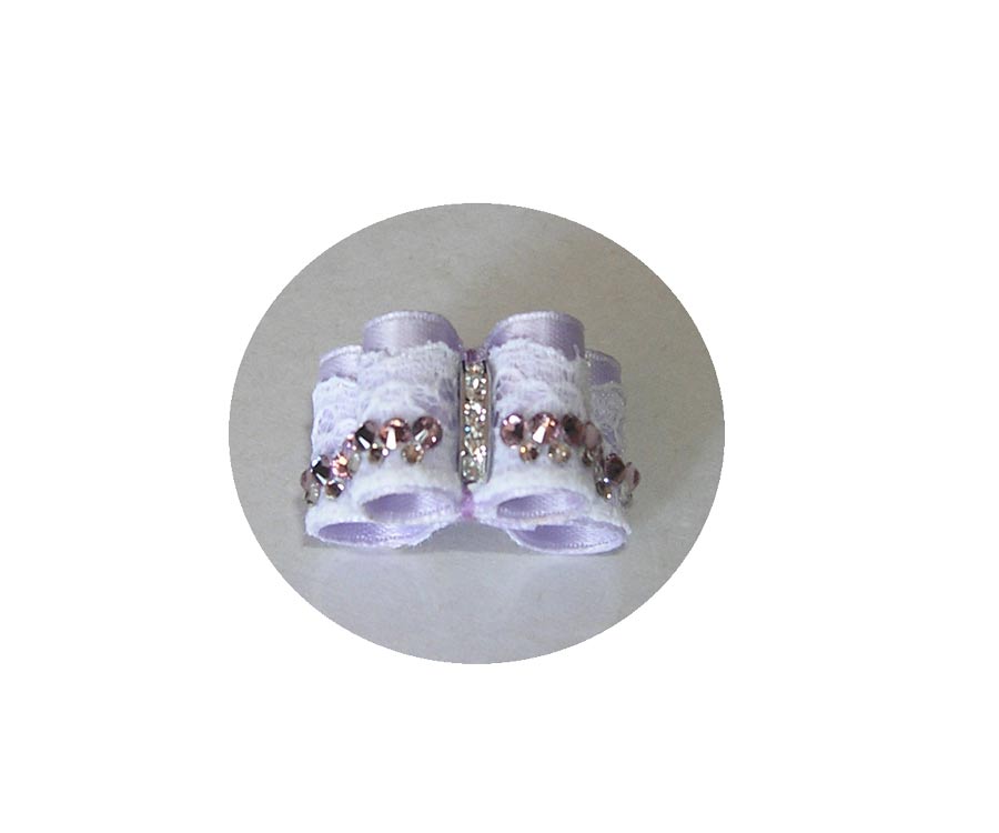 Pentljica s kristali, svetlo vijolična, primerna za pasje razstave ali posebne priložnosti.