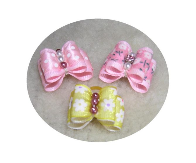 Pentljice iz satenastih ali rebrastih trakov, z elastiko, ki ne poškoduje dlake vašega ljubljenčka. Izbrane so naključno.