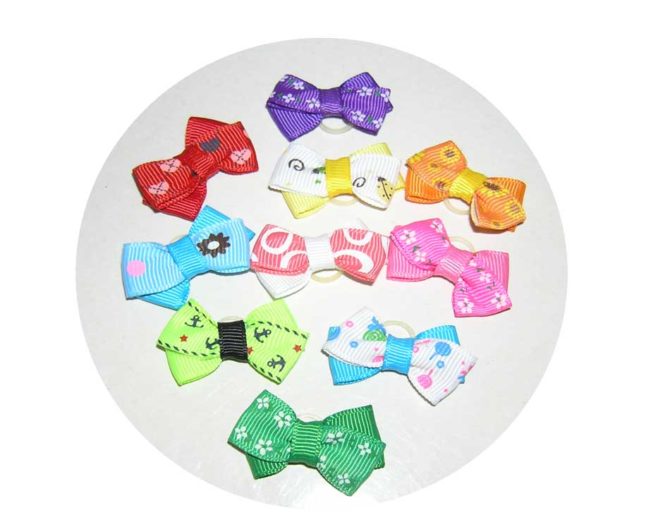 Pentljice iz satenastih ali rebrastih trakov, z elastiko, ki ne poškoduje dlake vašega ljubljenčka ali s sponko, s kristali ali perlami v centru.