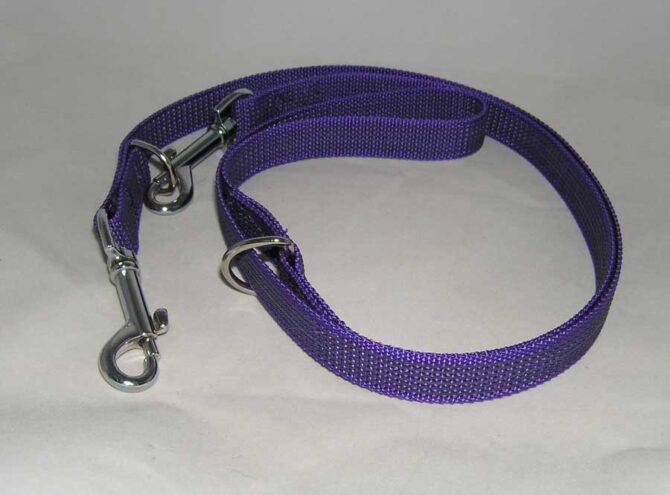 Gumiran povodec za psa, omogoča oprijem brez drsenja, v vijolični barvi. Enostavna nastavitev dolžine.